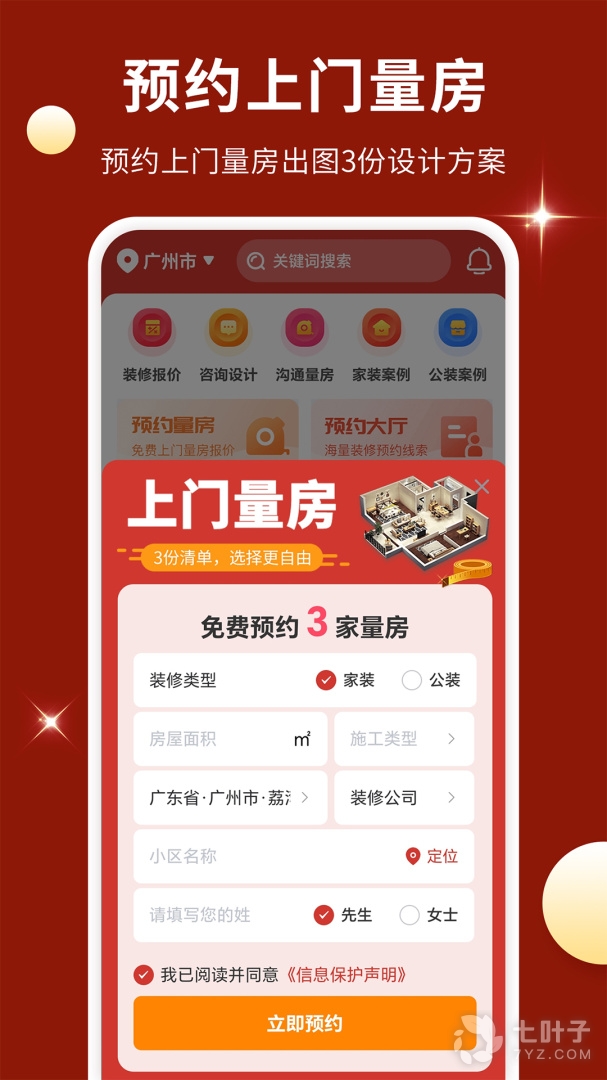 装修顾问24小时响应预约,免费上门量房,安排顶尖装修设计师!