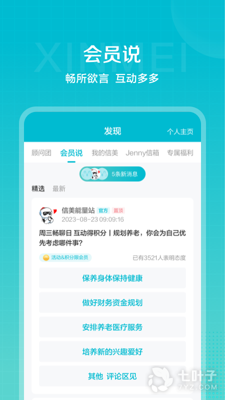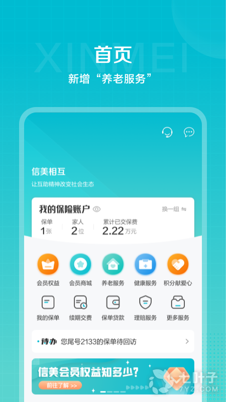 信美相互软件从组织形态上讲究的是会员共同所有、共享盈余、共担风险,会员才是组织的真正“主人”,对“主人”身份感兴趣吗?想和我们一起“让互助精神改变社会生态”吗?赶紧看过来。信美人寿相互保险社是经保监会批准成立的相互制寿险组织,虽然我们输出的也是保险产品及服务,但是会带给你最好的品质。