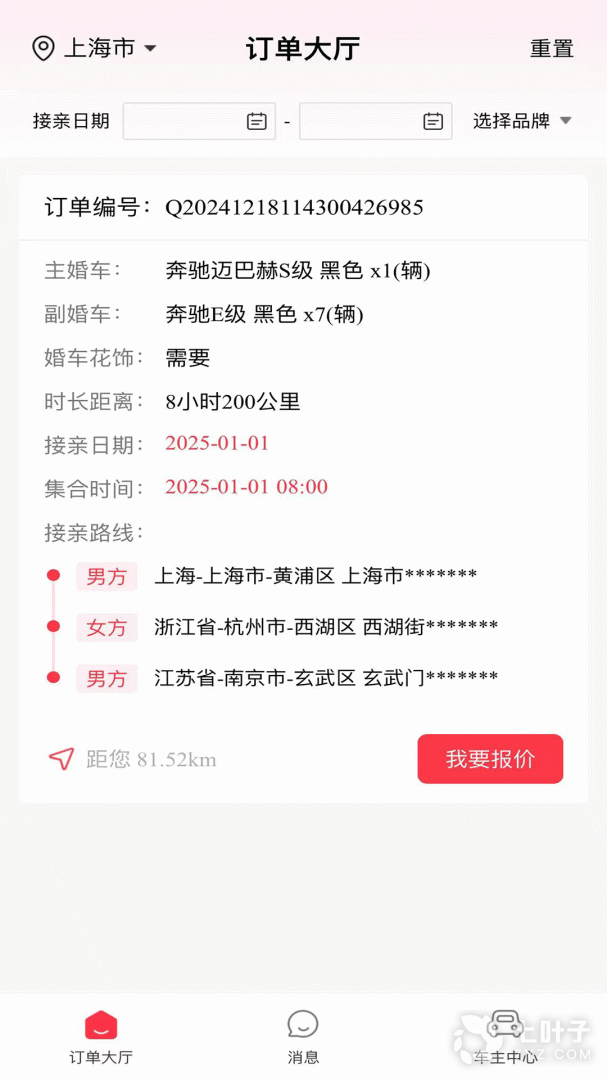 3、婚驾,这是一款拥有着全新内容设计打造的婚礼租车的平台,在这里可以帮助大家打造接亲车队,帮助大家完成对应的婚礼策划等等功能,在这里还可以帮助大家进行路线合理规划等等