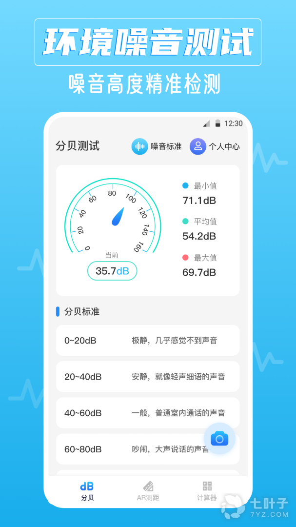 分贝仪是一款用手机麦克风来测量环境噪声分贝(dB)大小的噪声检测软件,测试时会有图表显示或分贝值情形供参考。