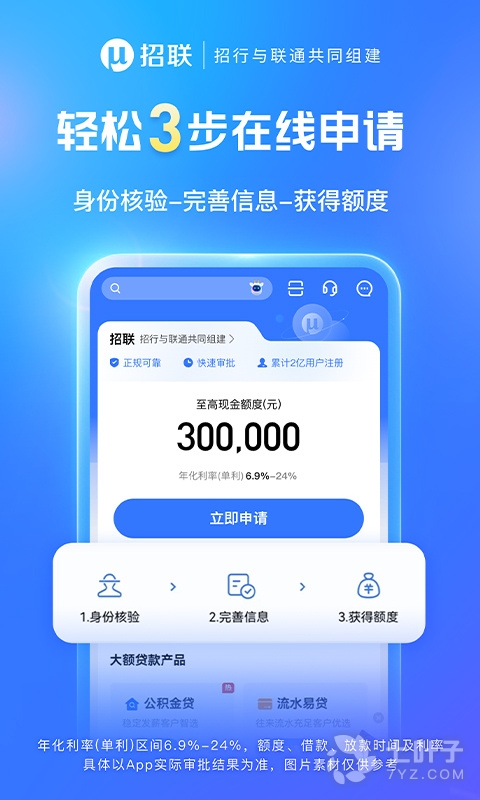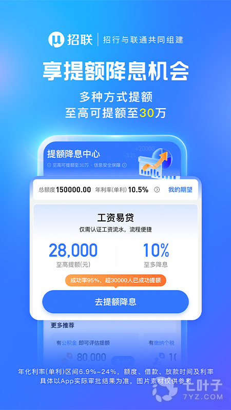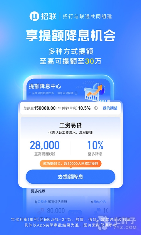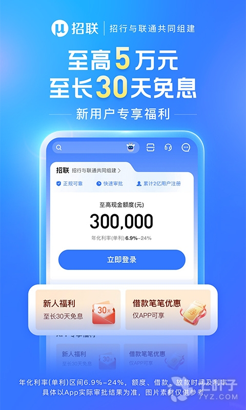 3、由招商银行和中国联通共同设立,经银监会批准,它是一家持牌消费金融机构,采用银行级安全,为您的信息安全和资金安全保驾护航,申请起来很方便,它是您周围的信用实现神器。