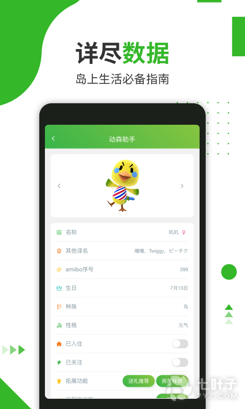 2、主要收集了一些图鉴、数据,帮助大家更快的了解这个世界,同时还有岛民适配度,送礼查询,每日打卡,护照设计,炒股神器(大头菜价格预测)等各种方便好用的功能,数据资料来源于网络,欢迎下载体验
