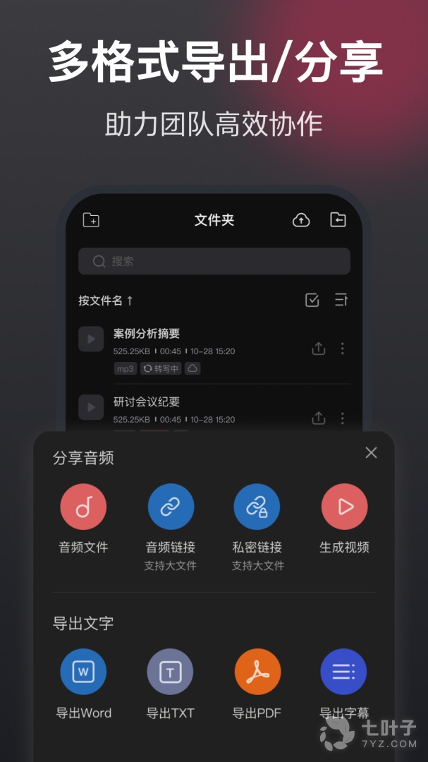6、支持多种音频格式转换,支持一键分享导出