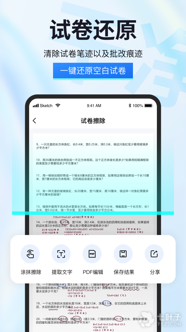 智能清除功能,一键擦除试卷上文字,还原全新试卷