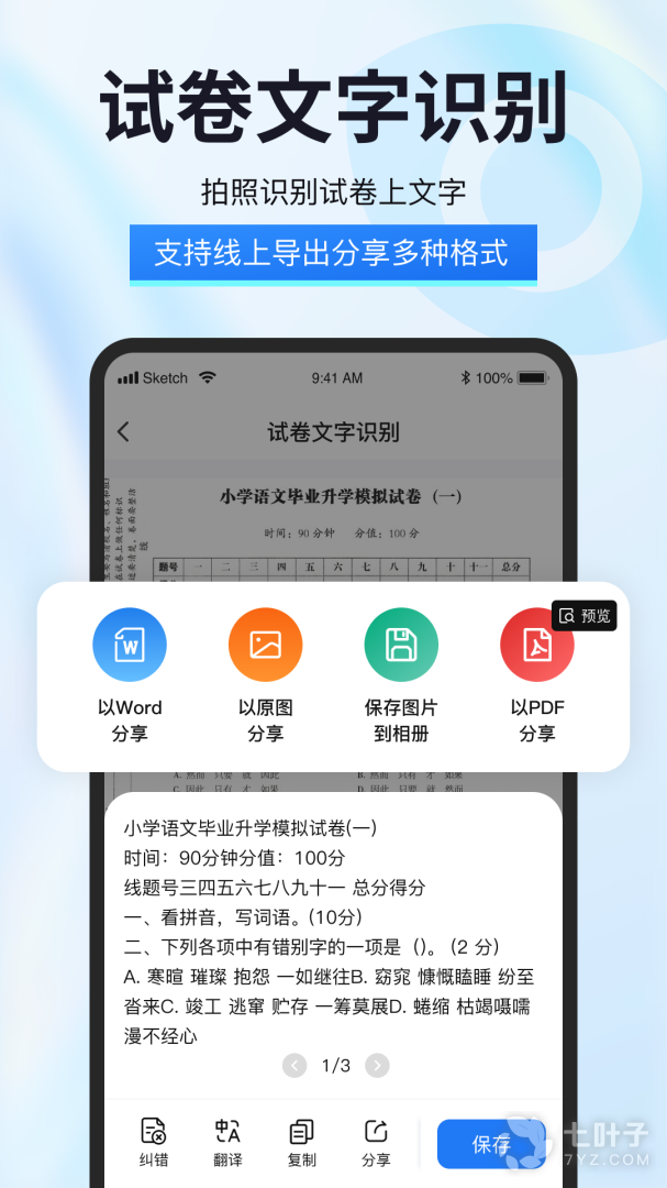 通过拍照或上传试卷图片,能够识别试卷内容并将其转换为可编辑的文本格式,方便用户进行批注、摘录等操作。