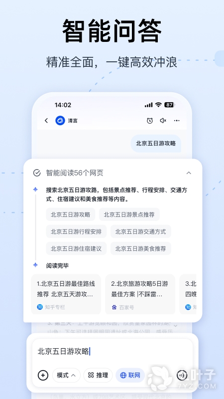 2、类似于文心一言的手机智能AI办公机器人,可以帮助你快速获取相关内容答案以及文档编写资料,各行各业都可以使用这个APP来协助学习工作,尤其是文字编辑类的,智谱清言拥有千亿参数对话模型,不用担心找不到你需要的内容,使用简单,直接输入你想要的内容描述或者是提问就可以了