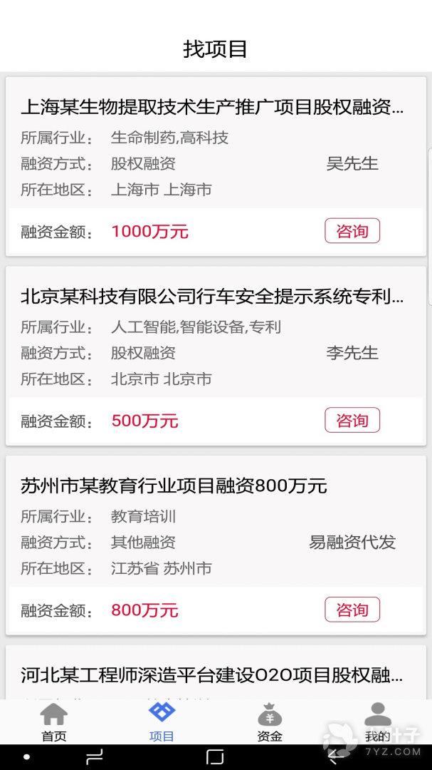 2、资金方可以轻松投资自己意向的项目,项目方可以高效的找到自己满意的资金。让投资人轻松找项目,让项目方随时随地找资金