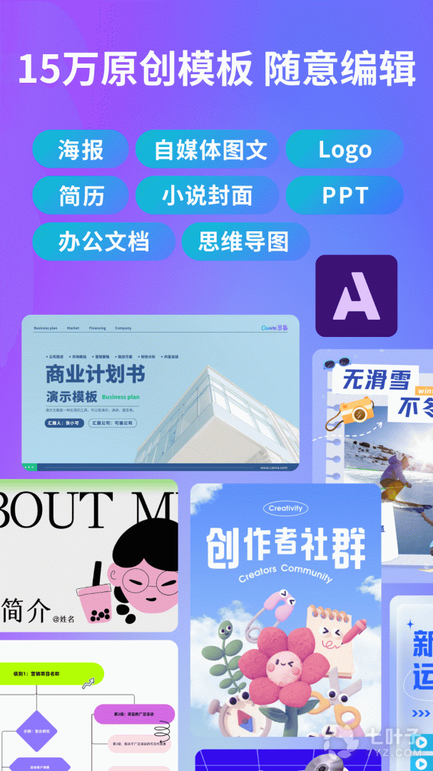 15万+原创模板,海报/简历/封面/Logo/PPT/朋友圈配图/电商主图/节日模板,应有尽有。