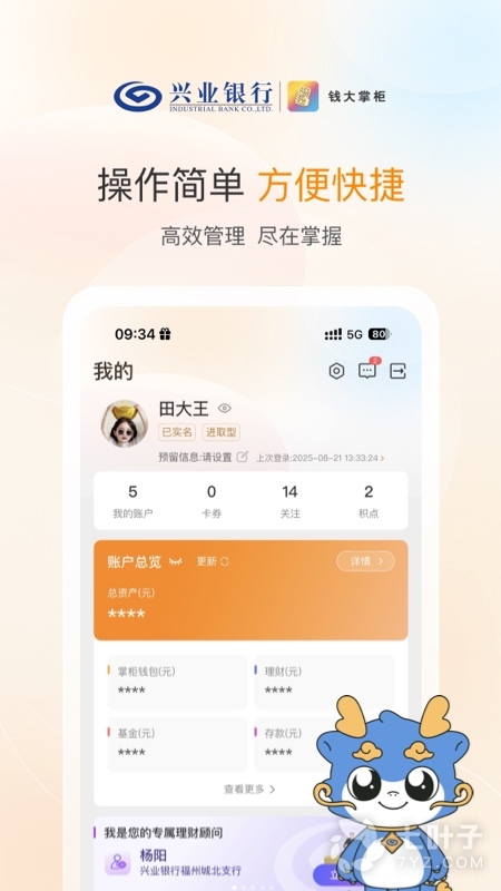 钱大掌柜是兴业银行推出的互联网财富管理平台,涵盖银行理财、基金、债券、贵金属等产品,支持定期理财产品转让、信用卡还款、转账、消费贷款等众多应用,还有权益丰富的钱大掌柜信用卡,为您提供全方位理财服务。