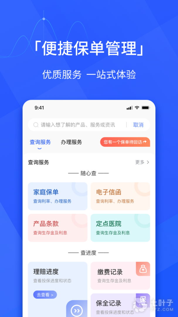 随时随地享受专业的保单查询、保单变更和自助理赔服务。