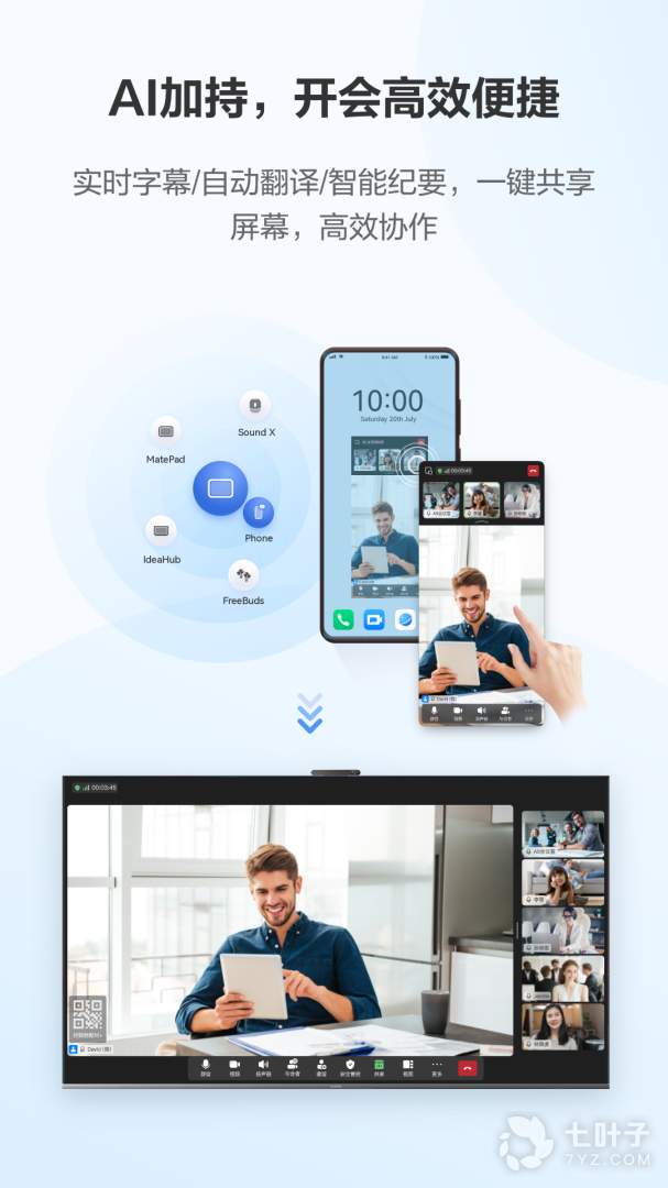 2、华为云会议让大家可以享受完美的云会议,不管你在何地,通过它还能够进行视频会议