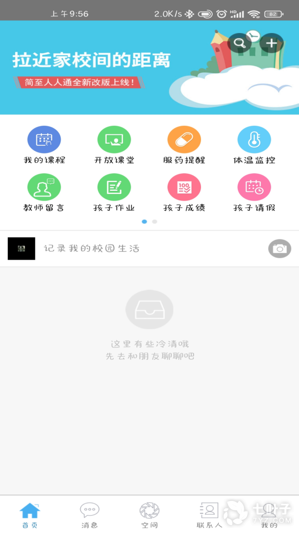 3、软件即时聊天,人人空间,缤纷应用,致力建设家校共育,全方位让孩子更好的学习成长
