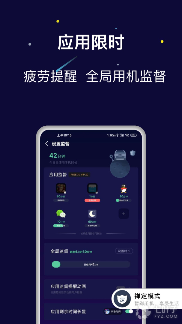 禅定模式帮助您告别手机沉迷,更多关注生活,不被手机打扰。