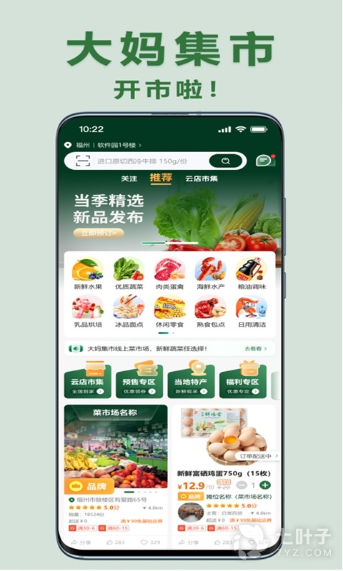 1、大妈集市,一款为用户提供线上买菜的软件,让用户在家里就可以云逛菜市场,为您提供超多新鲜瓜果蔬菜,下单就可以送货上门啦,当你不想出门或者因为疫情封控原因没办法出门买菜的时候就可以来下载大妈集市哦,让你吃到最新鲜最划算的食材