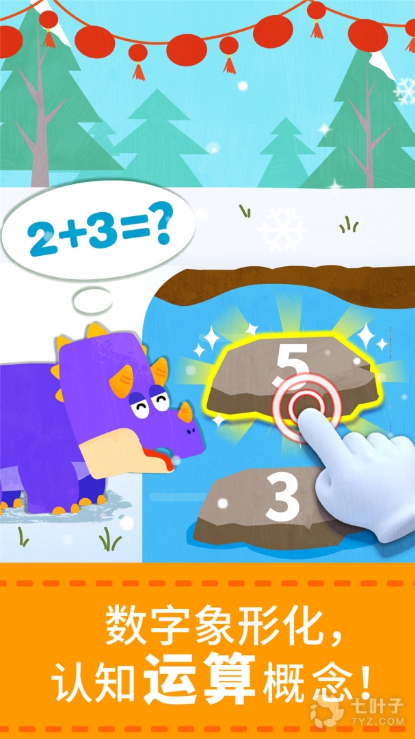 设计交互操作,融入儿童喜欢的恐龙和经营元素,让宝宝对加减计算学习保持热情。