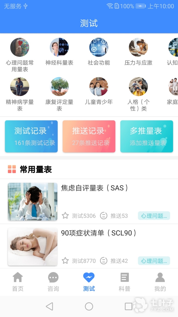 6、b、可以进行不通的心理健康测试查看到自己的测试的结果内容