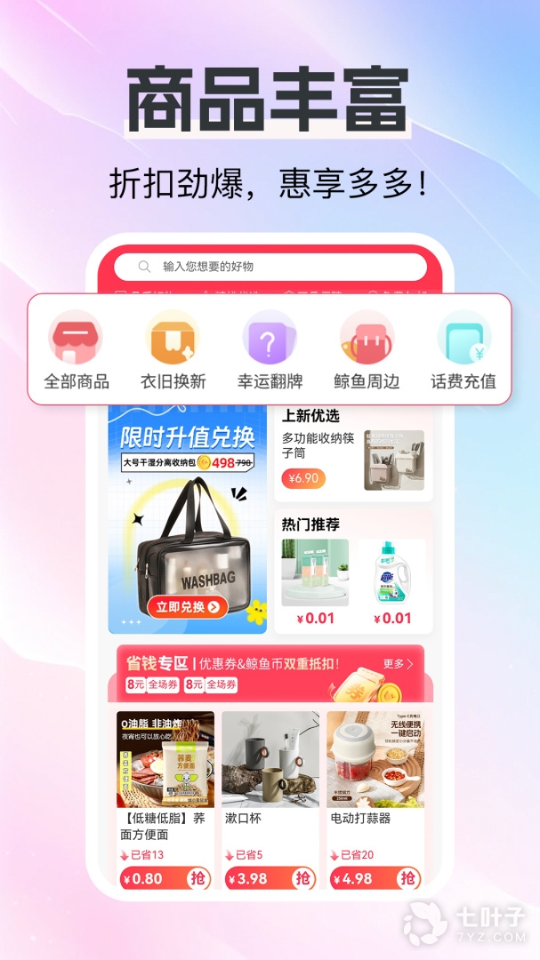 4、鲸鱼商城好礼相换:通过回收获得鲸鱼币可以在此换购各类喜爱的东东
