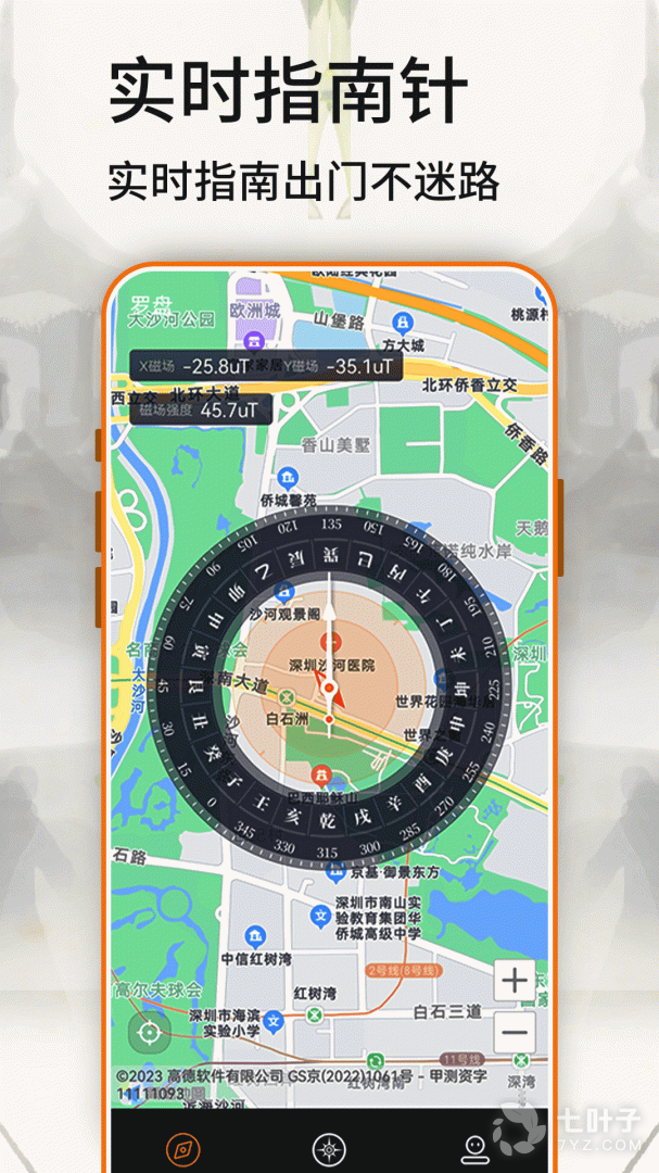 罗盘APP是一款精准定位的服务软件,当用户在迷失当前位置时,使用这款软件可以精准的确定方向,并且这款软件在确定方向时,会显示周围全部信息,为用户提供诸多便捷,独特的软件设计和强大的功能,让用户使用这款软件时欲罢不能!