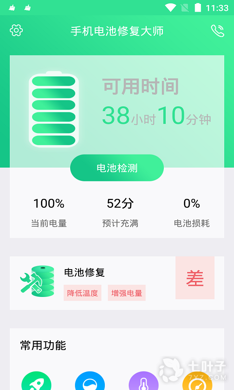 1、手机电池修复大师为用户提供了电池监测功能,可检测电池使用状态、一键修复电池、延长电池寿命