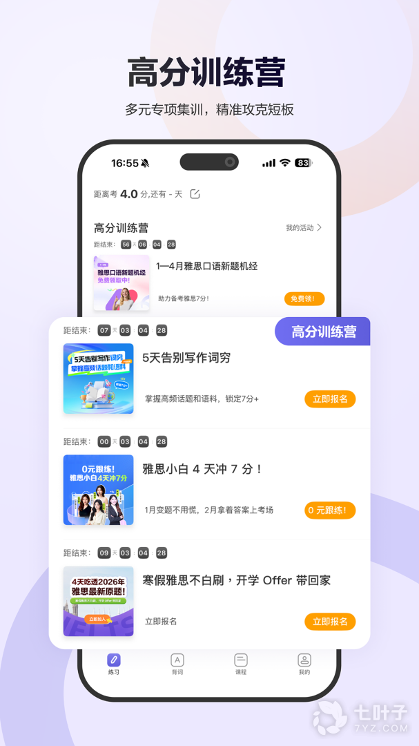 2、雅思考满分英语学习软件,想要考雅思的学生可以试试哦,这里有超多专业型的口语,听力,阅读等功能,还能学习到写作类知识哦,轻松就能考试通关,还有很多免费的干货提供哦,所有的雅思题库为您收录,支持手机号注册登录使用