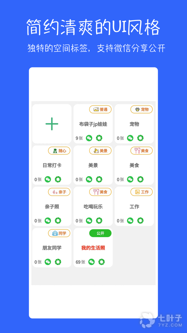 七彩云相册是一款云存储相册,用户可以新建多个相册来存储不同类型的照片,还可以设定相册的标签:宠物、亲子、亲人、朋友、恋人等