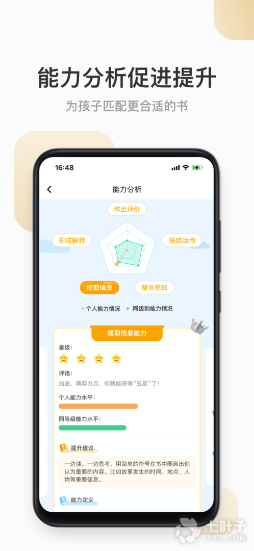2、阅读能力分析,帮助孩子做出合理的阅读计划和调整。