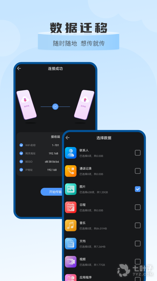 换机大师可以一键传输图片,频频,备忘录,通讯录,提醒事项等;