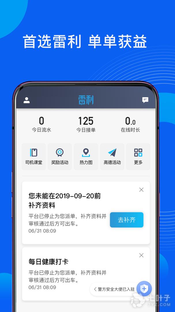 1、雷利出行司机端APP方便了平台上入驻的司机进行接单,整个行程都是受平台保护的,包括乘客对你的评价和行程打分,以及整个订单的收益情况都是能查看的,并且是支持提现的,操作很方便,速度也很快