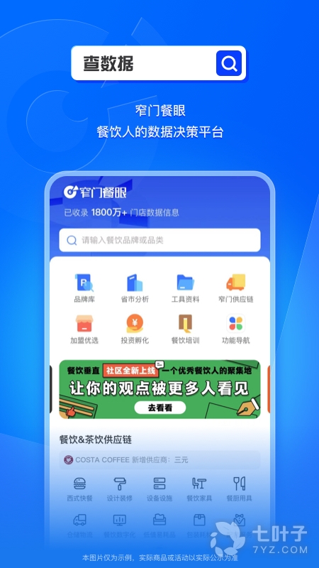 2、使用这款软件可以了解最新的行业动态,使用这款软件查询餐饮品牌,查询供应商,查询外卖数据等信息,为餐饮人提供行业指南,需要的可以来窄门餐眼进行使用