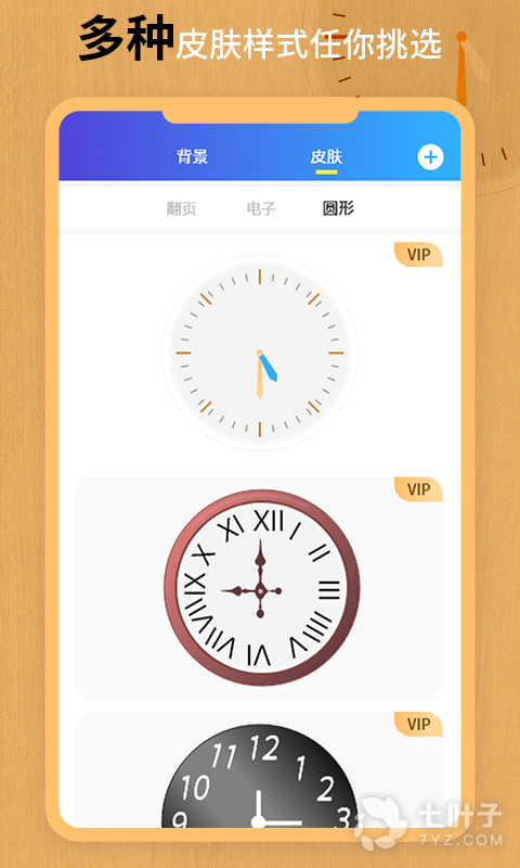 3、时钟精美壁纸:超多主题自由定制:不同时钟、自定义背景图片、切换多个时钟背景