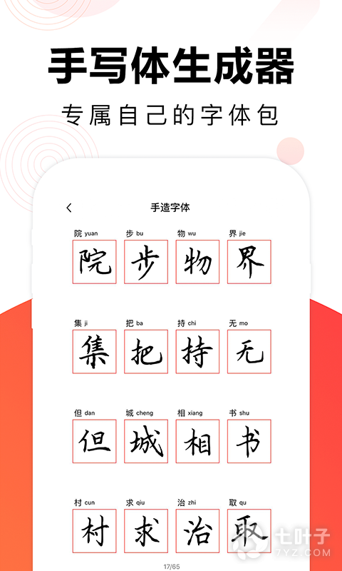 2、支持各种字体,练习内容涵盖了汤匙宋词,成语经文等等,非常齐全,超多3000汉字量,书法字帖支持打印定制,手造字体是私人专属,字友学堂学习还可以点评互助。需要的可以下载毛钢字帖使用