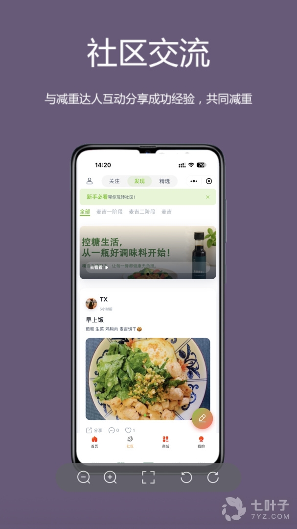 1、社区交流与减重达人互动分享成功经验,共同减重让自己的身体更加轻盈健康