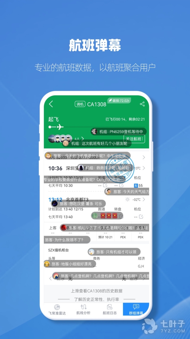 2、社区内航班弹幕随时参看,在线参与互动讨论等