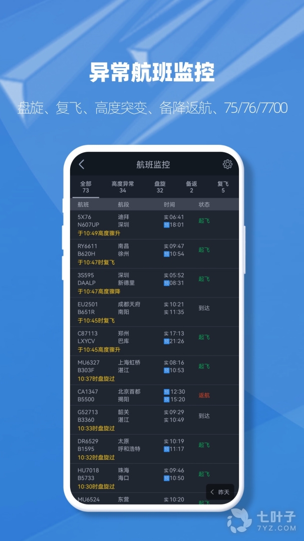 1、提供起飞、到达、延误、取消、返航、备降六大类航班状态通报。