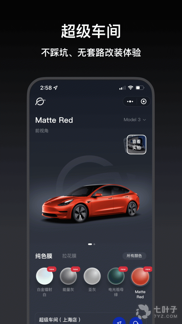 2、上海、深圳、广州改色、改装,专业一条龙。可使用“超级车间”小程序,提前体验改色、为爱车换件新衣