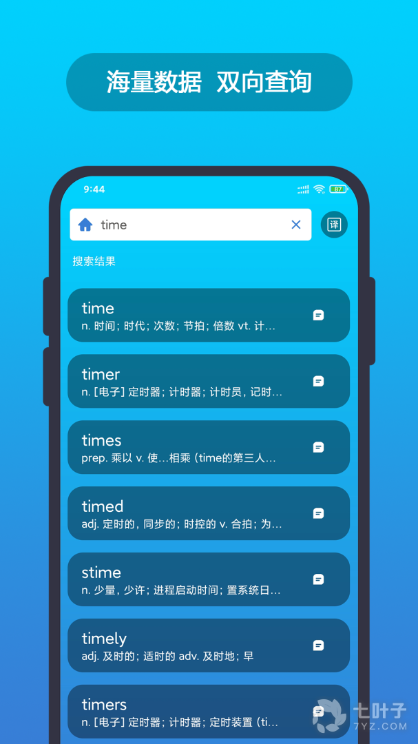 提供了海量的英文单词及其发音、释义、例句等数据,随时随地轻松查询,没有网络,身处国外等情景都一网打尽,照查不误。