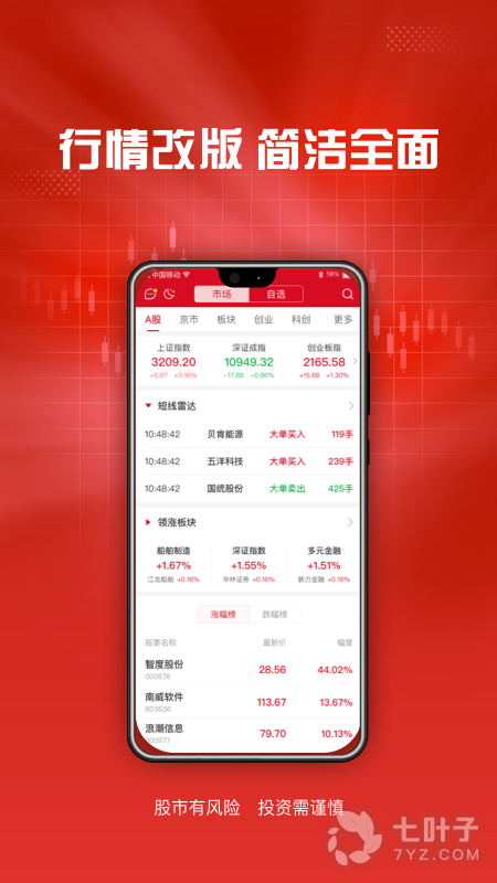 实时查看到各种领涨板块、涨幅榜等市场行情数据信息;