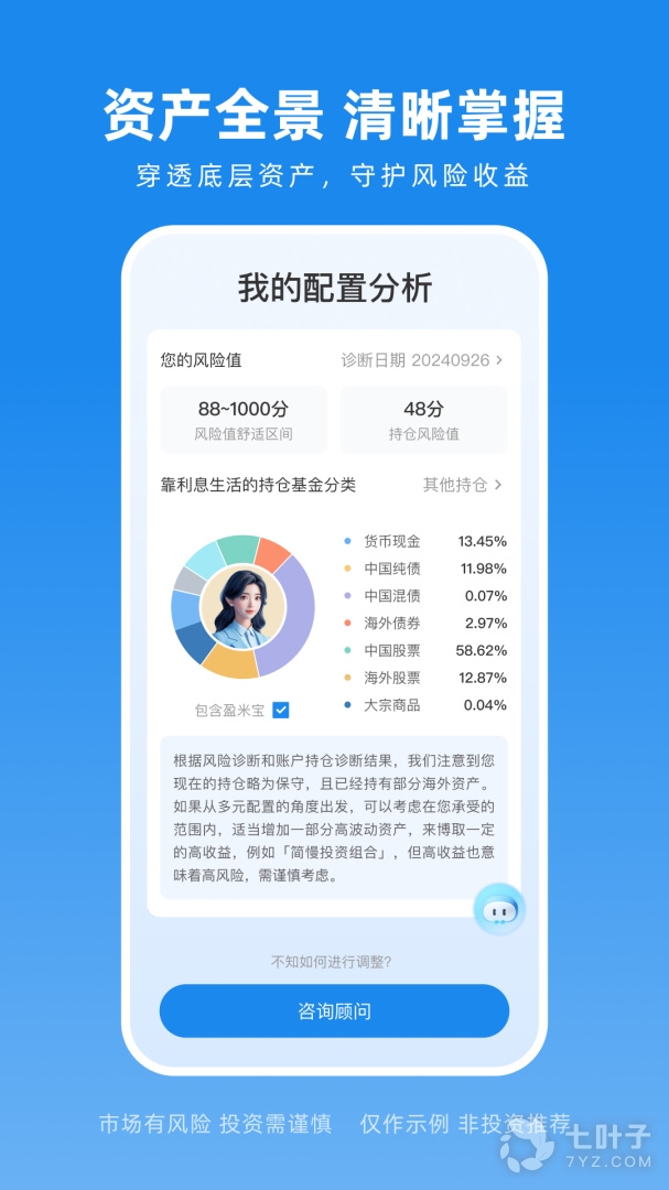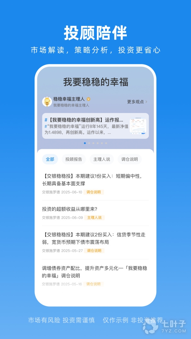 投资理财顾问全程陪伴,在用户情绪焦虑或者亢奋的时候,给予正确的指导,避免用户受情绪影响做出各种不理智的操作而遭受投资损失,帮助用户走过市场的高峰和低谷,与时间为伴,积累⻓期财富。