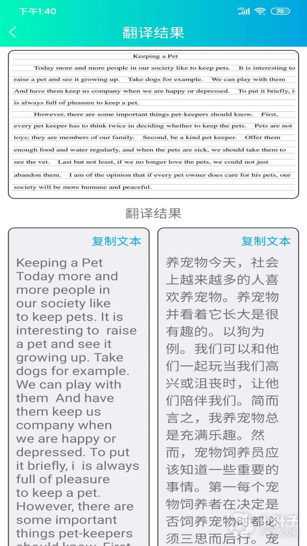 4、快速识别图片文字,一键转换成译文
