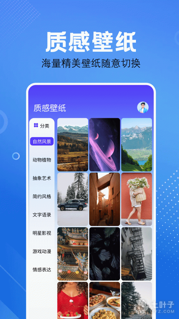 选择喜欢的壁纸类型查找相关的精美壁纸资源,随意选择壁纸;
