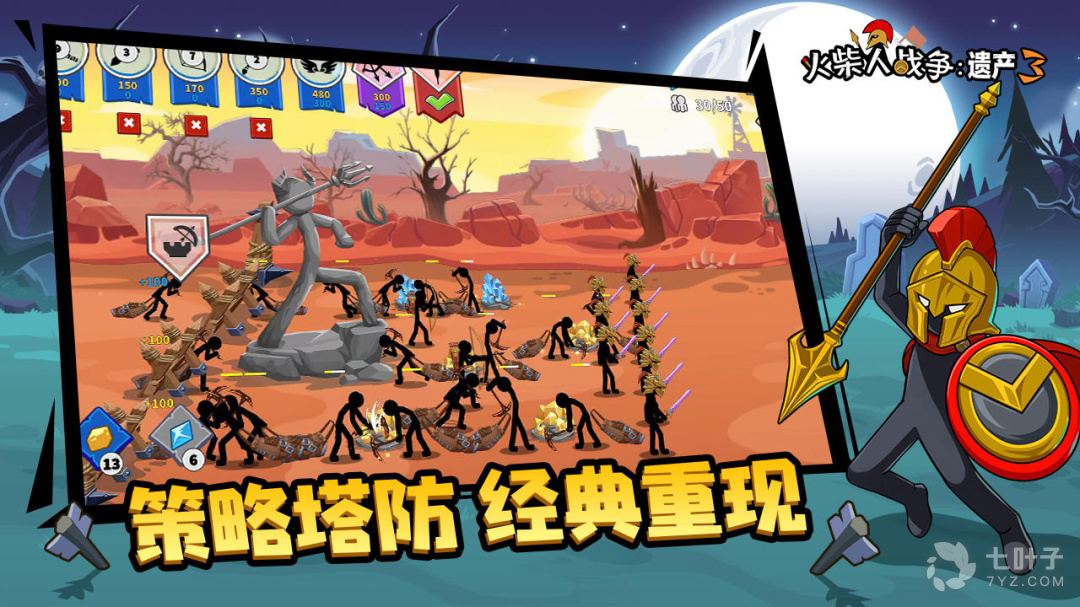 1、游戏以经典火柴人题材打造,玩家可以在这里畅玩经典战役模式和无尽僵尸模式,根据战场形式,调整出战的兵种,组建自己的火柴人军队,开始征战周边领土吧