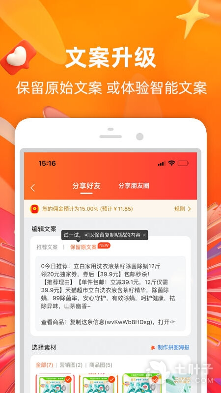 1、可以随时随地在在手机端上推广淘宝上的商品,并进行赚钱,支持一键分享至微信、QQ、来往等社交平台。