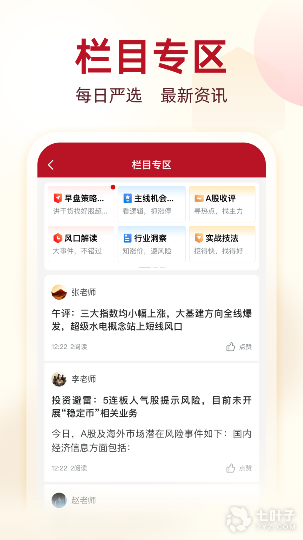 ·专业的投顾、投资达人实时进行直播,为你提供诸多的投资战法、进行实时诊股