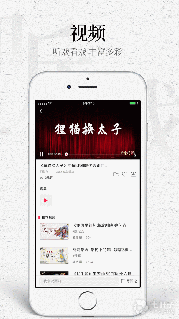 2、一看以听为主的数字戏曲音乐发行平台,又有庞大的曲库:10万+囊括百种唱腔,上前卫戏曲艺术家给你多重选择;强大专业的戏曲库编辑团队,每天为您输送专业优质内容,让你加深认识
