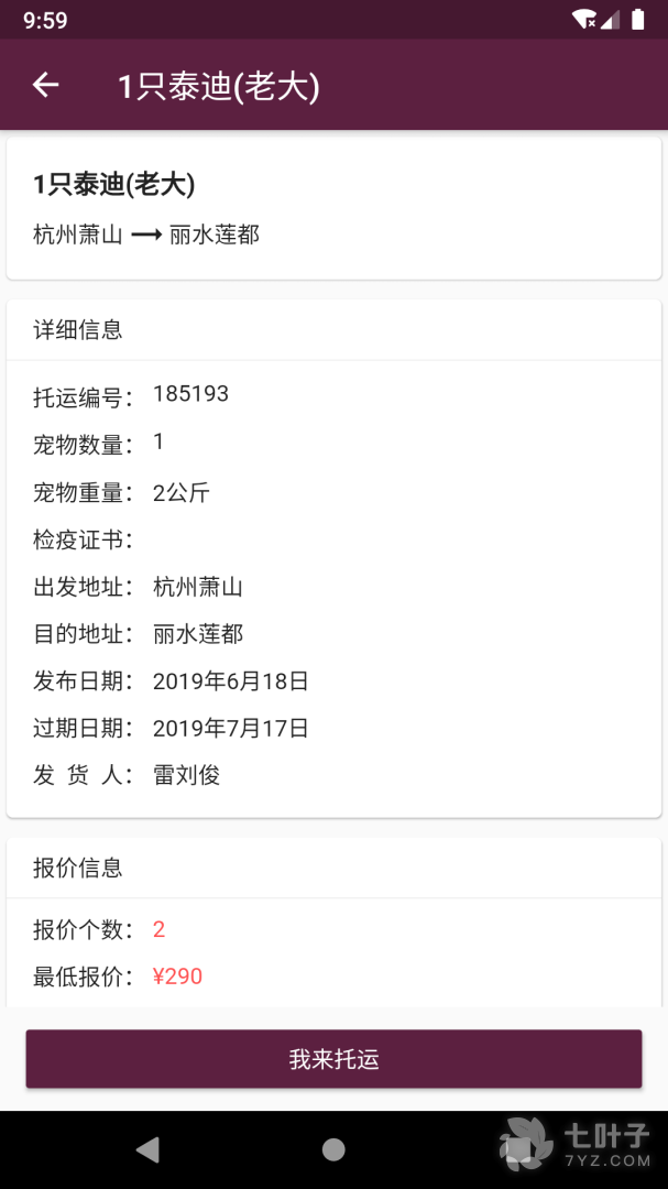 6、免费发布宠物托运需要,等待宠物托运公司出价通知
