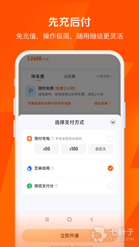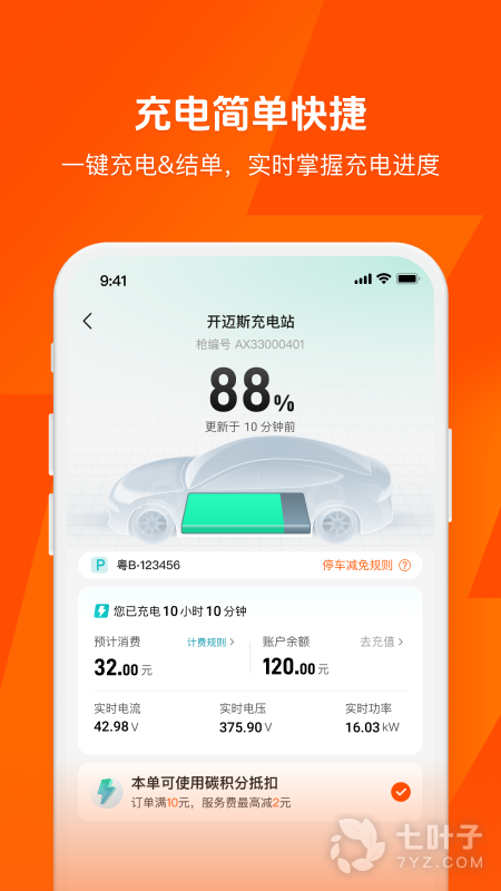 1、在线充电,支持特来电、聚电科技、杭州万马、广州劲桩等12W充电桩扫码充电