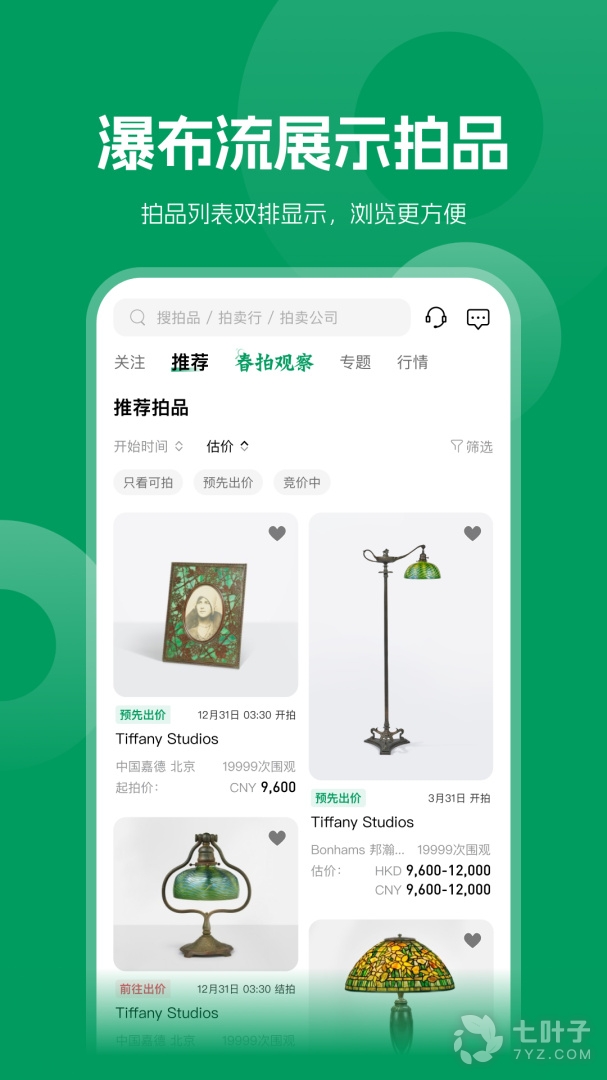 2、在这里有着海量的艺术品拍卖专场,专业的拍卖机构为你估价,都是出自大师之手,在这里可以全方位的了解艺术品,功能十分强大