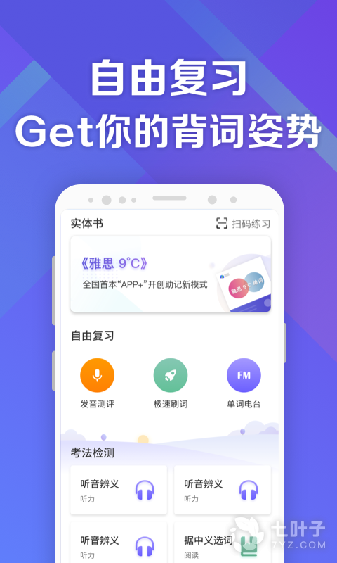 1、自由背词满足个性,用户可以进行发音测评、离线刷词、收听单词电台等