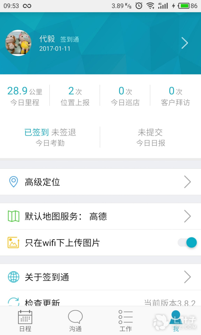 1、丰富的外勤管理工具,工作中心的外勤栏中设置了位置上报、我的轨迹以及轨迹查询等工具