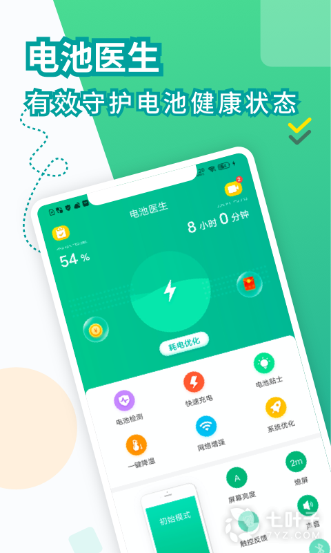 1、电池医生是手机电池优化服务软件,帮助用户实时管理手机电池使用情况,可以设置低电量和充电情况提醒,还有多种电池养护知识可以了解,轻松延长电池寿命,感兴趣的伙伴,来吧